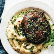 5. Done: Serve up a mushroom steak on a dollop of creamy potatoes and – you guessed it – spoon the last of your chimichurri over the top. Salt, pepper, red pepper flake it… and you’re good to go!